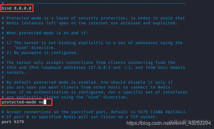 bind 127.0.0.1 => bind 0.0.0.0 //开启远程访问