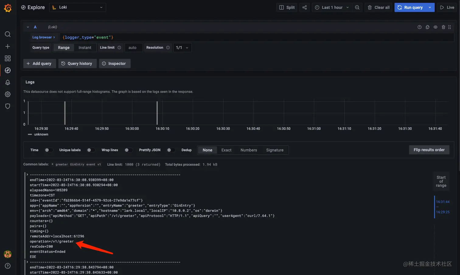 addr: localhost:3100 # 往 Loki 里推送 Event 类型日志