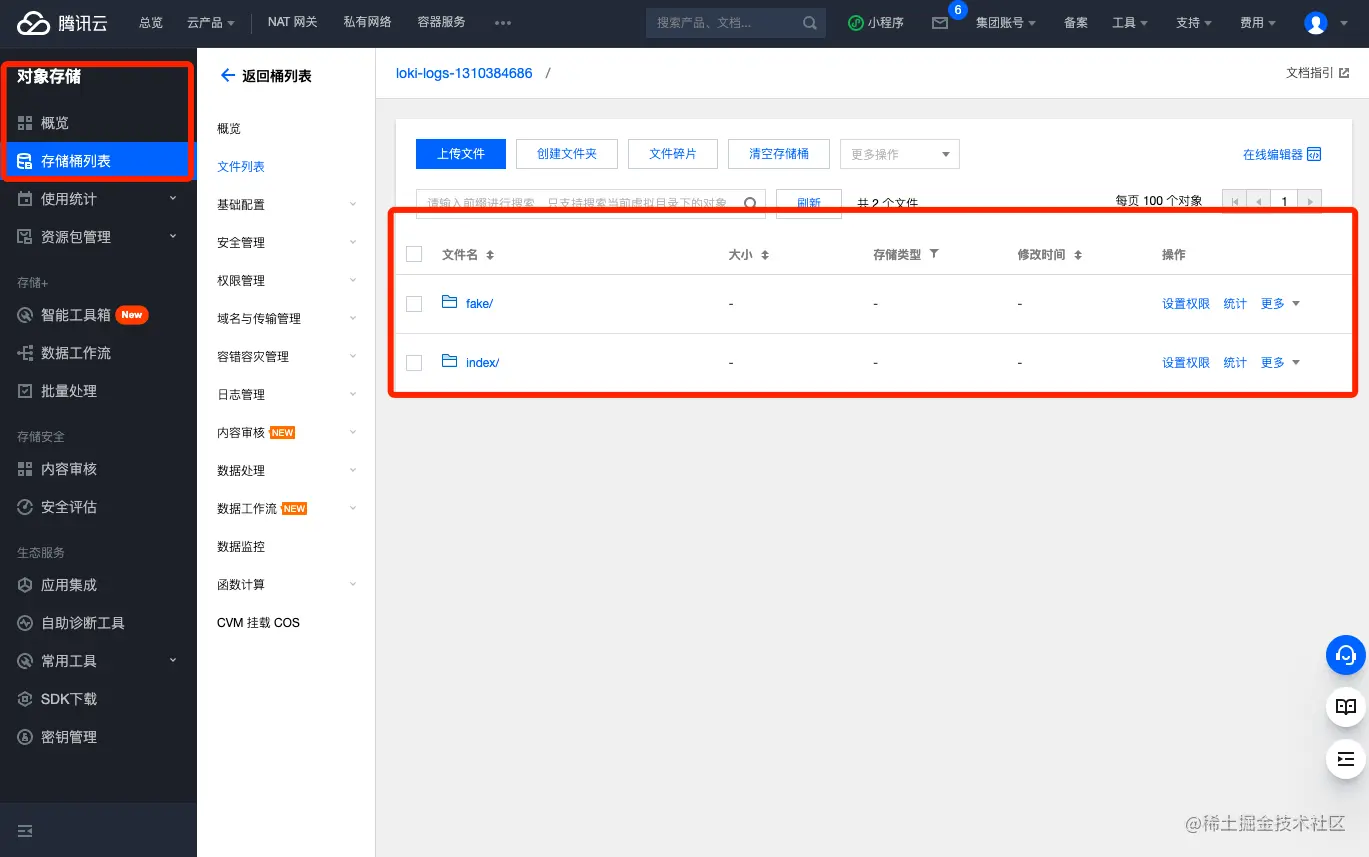 登陆腾讯云,验证数据是否正常写入到对象存储。