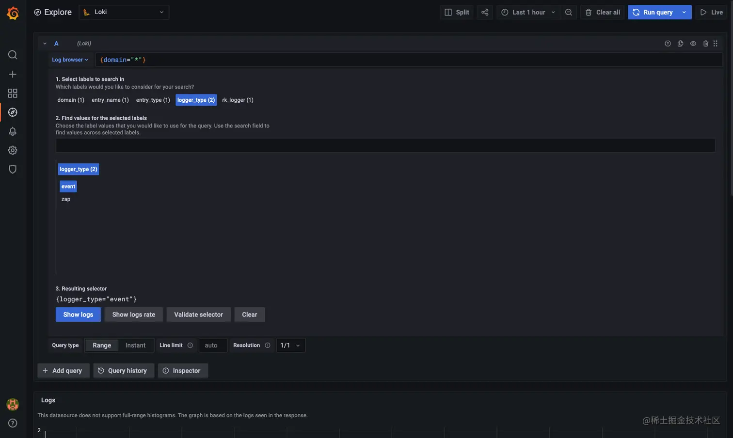 在这个方案中,我们没有使用到 filebeat, promtail 这种日志采集器,也没有使用日志推送进程。因为是小规模场景,把【棘手的问题】忽略掉,是一个不错的选择。 我们使用 rk-boot/v2 直接往 loki 中推送日志,即避免了繁琐的正则表达式,也不用考虑日志采集器不工作的问题,同时,也不用考虑日志格式的问题。