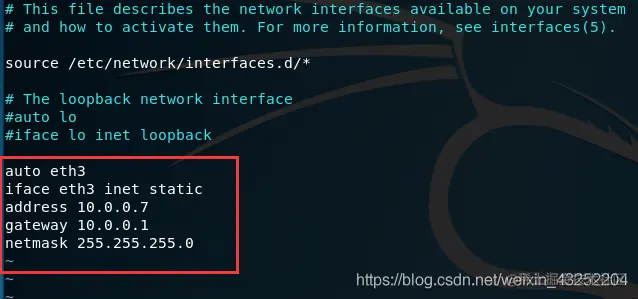 vim /etc/network/interfaces