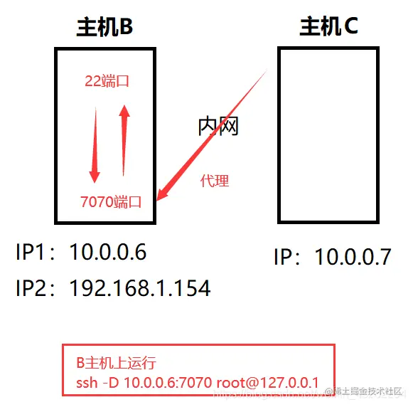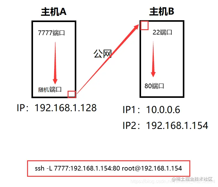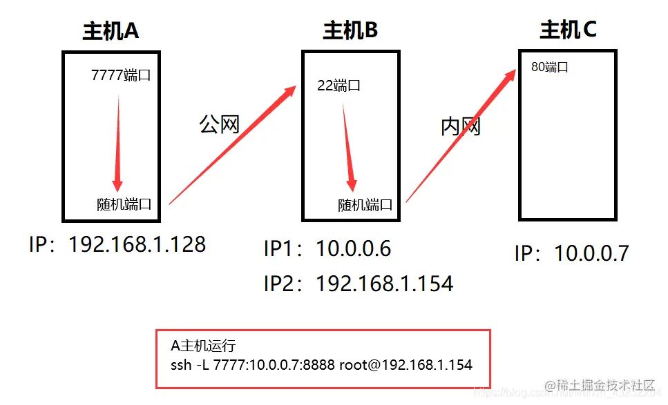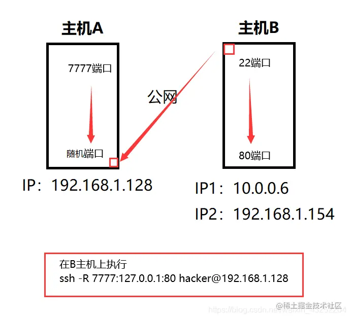 这样的话,我们的主机A是无法通过ssh连接到B主机,这里就要用到反向代理,在B主机上将本地的80端口反向代理到A主机的7777端口