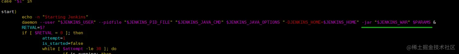 service jenkins start 时,会执行 /etc/init.d/jenkins 文件 start 方法