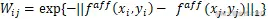 在训练过程中图像经过AffinityNet得到特征图f aff,则特征图上像素i和j的语义密切度W ij计算方式如下: