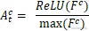 对单张图像中的某个类别而言,在第t个epoch训练该图像时对其CAM特征图F c进行ReLU和标准化:
