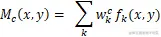 设f k(x,y) 为最后一层卷积层获取的第k个特征图在 (x,y) 位置的值,w k c是类别c对应最后一层全连接层第k个权重,则类别c的响应特征图CAM在 (x,y) 位置的值为: