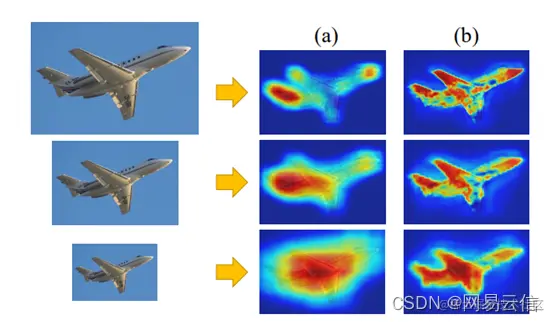 该文章引入大火的自监督学习理念,通过观察发现同一图像经过不同的仿射变换所产生的CAM不一致这一特点(如图6-a中不同尺寸变换),利用隐式的等变换约束的方式建立类似自监督对比学习的一致性正则化学习机制,减少这种不一致程度来优化CAM,从而得到高精度的种子区域(图6-b)。