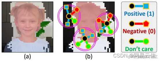该模型训练的主要难点在于如何不使用额外的监督信息,作者通过观察发现CAM可以作为产生训练AffinityNet监督信息的来源。虽然CAM存在覆盖不完全以及噪声问题,但是,CAM依然会正确地覆盖局部区域并确认该区域像素间的语义密切关系,这正是AffinityNet所需要达成的目标。为了获取CAM可靠的标签,作者摒弃了CAM特征图分数相对较低的像素,只保留高得分和背景像素。在这些特征区域上采集像素对,如果它们属于同一类别则label为1,否则为0,如图8所示。