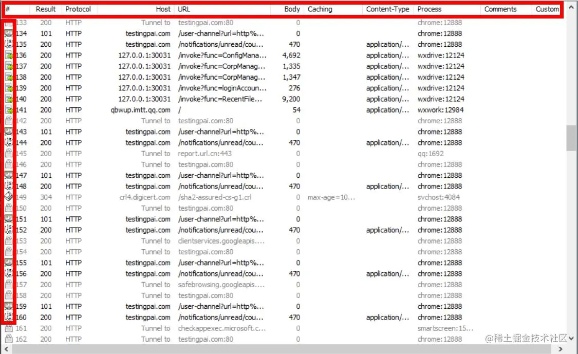 Fiddler 有一个抓包开关,File –> Capture Traffic,开启后左下角显示,也可以直接点击左下角图标来关闭/开启抓包功能。