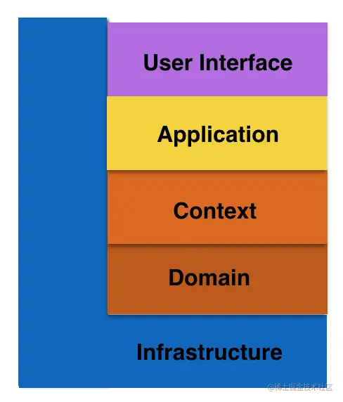 Infrastructure层为基础实施层,向其他层提供通用的技术能力:为应用层传递消息,为领域层提供持久化机制,为用户界面层绘制屏幕组件,等等。基础设施层还能够通过架构框架来支持四个层次间的交互模式。