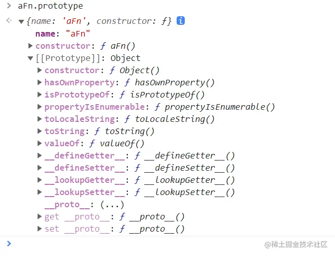 上面我们打印的构造函数aFn的原型对象,里面有一个[[Prototype]],在控制台上将其展开,可以看到一个构造函数属性constructor: ƒ Object(),是不是和aFn的原型对象很像?其实[[Prototype]]等同于__proto__[1]