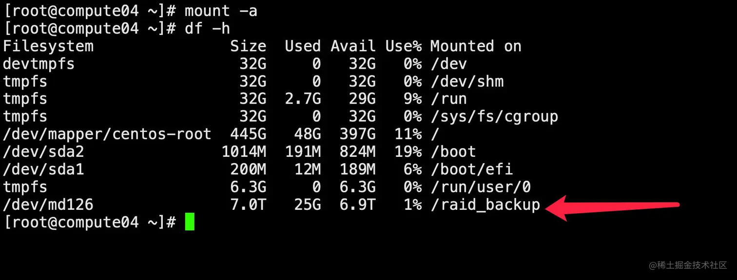 mount -t xfs /dev/md126 /raid_backup/