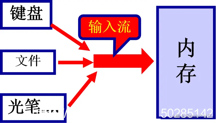 - 从磁盘文件中的数据装载入内存中,叫输入文件。
