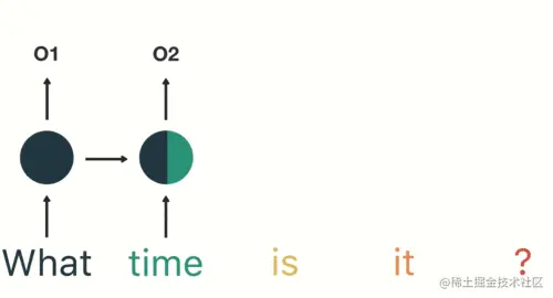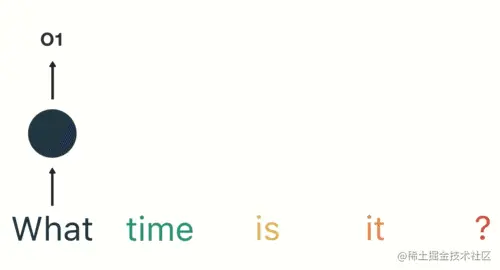 然后,按照顺序将五个基本单元输入RNN网络,先将 “what”作为RNN的输入,得到输出01