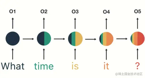 以此类推,我们可以看到,前面所有的输入产生的结果都对后续的输出产生了影响(可以看到圆形中包含了前面所有的颜色)