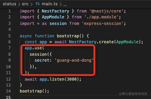 Nest.js 的底层是 express,它只是额外提供了一些架构的划分,所以还是 session 实现还是用的 express 的方案: