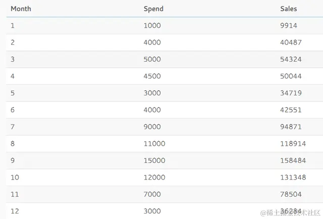 我们有如图的数据集,我想要用回归分析做month, spend对sales的关系。