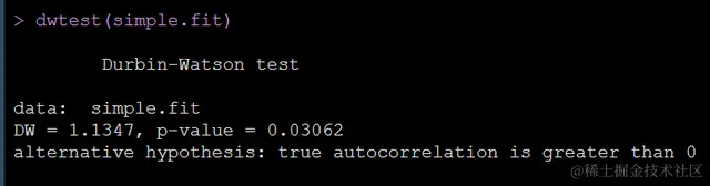 dwtest(simple.fit)