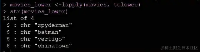 movies_lower <-lapply(movies, tolower)