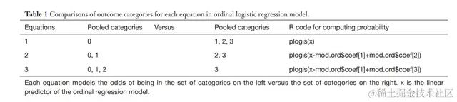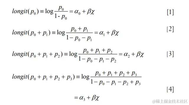比如我们的例子中,我们就会同时拟合如下3个模型,第1个模型回答了个案是不是大于第1类,第二个模型回答了是不是大于第二类,第3个模型回答了是不是大于第3类,这样就穷尽了所有的可能性。