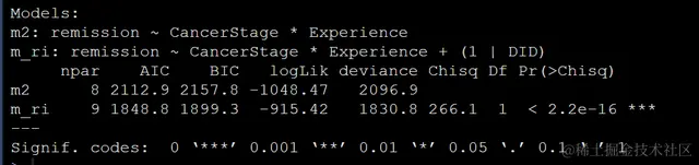 模型比较的结果也显示多水平模型是显著地优于普通logistics回归模型的。