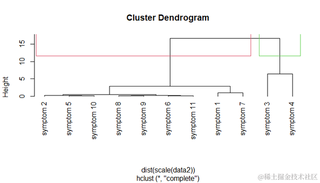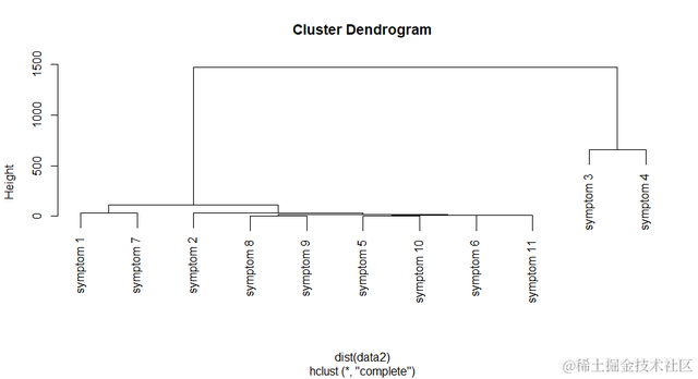 我想看看病人中这些个症状有哪些”症状群“,首先我们需要将数据框转置,然后再进行聚类,我就可以写出代码如下: