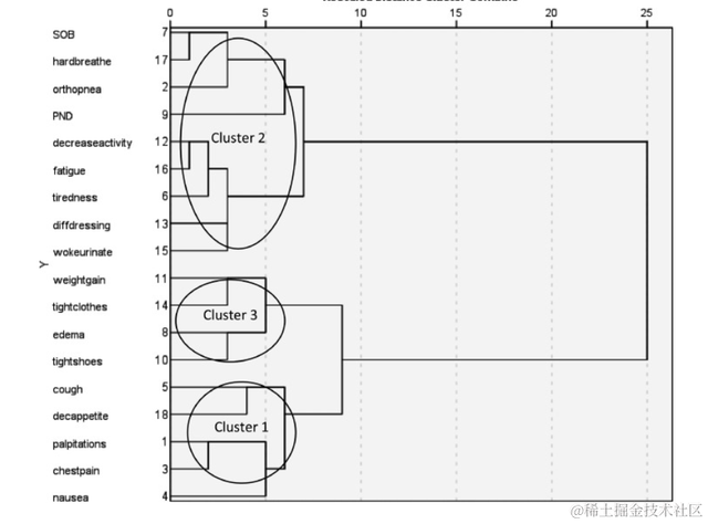 做出来的结果呈现就是下图:这个是一篇已经发表的文章中截图出来的,作者是将一个疾病的症状聚类了3类,探讨了每一类的特征,并提出了治疗照护的建议。