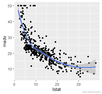 ggplot(train.data, aes(lstat, medv) ) +