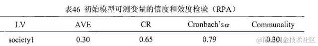 然后是测量变量的信效度,包括AVE,communality在下图(图2)中: