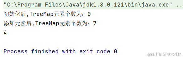 System.out.println("初始化后,TreeMap元素个数为:" + treeMap.size());