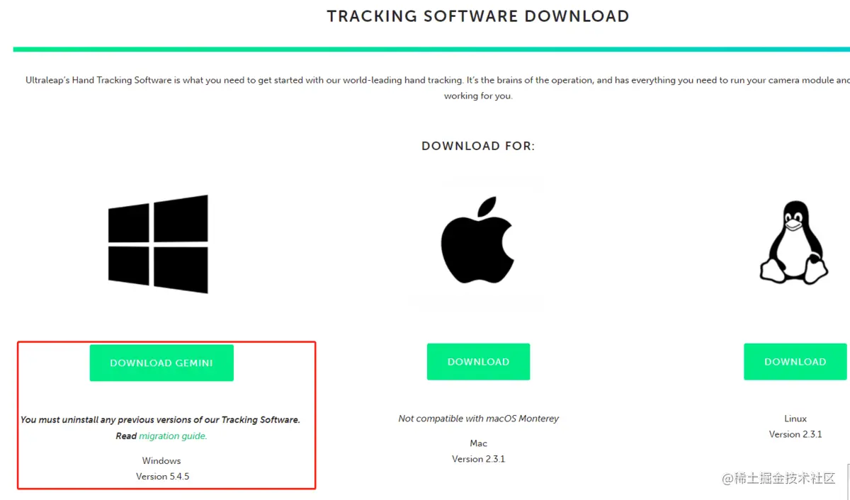 上面的一些下载也已经更新了,现在这个跟踪软件叫做ULTRALEAP GEMINI