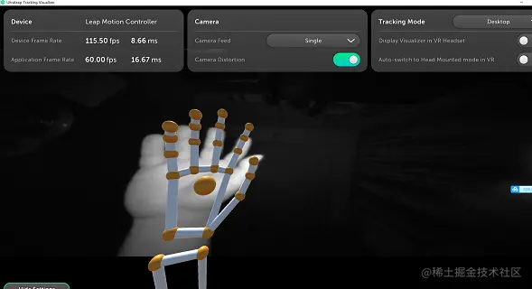 这是在新版的官方软件中附带了可视化的跟踪软件,可以看到手部的骨骼绑定效果
