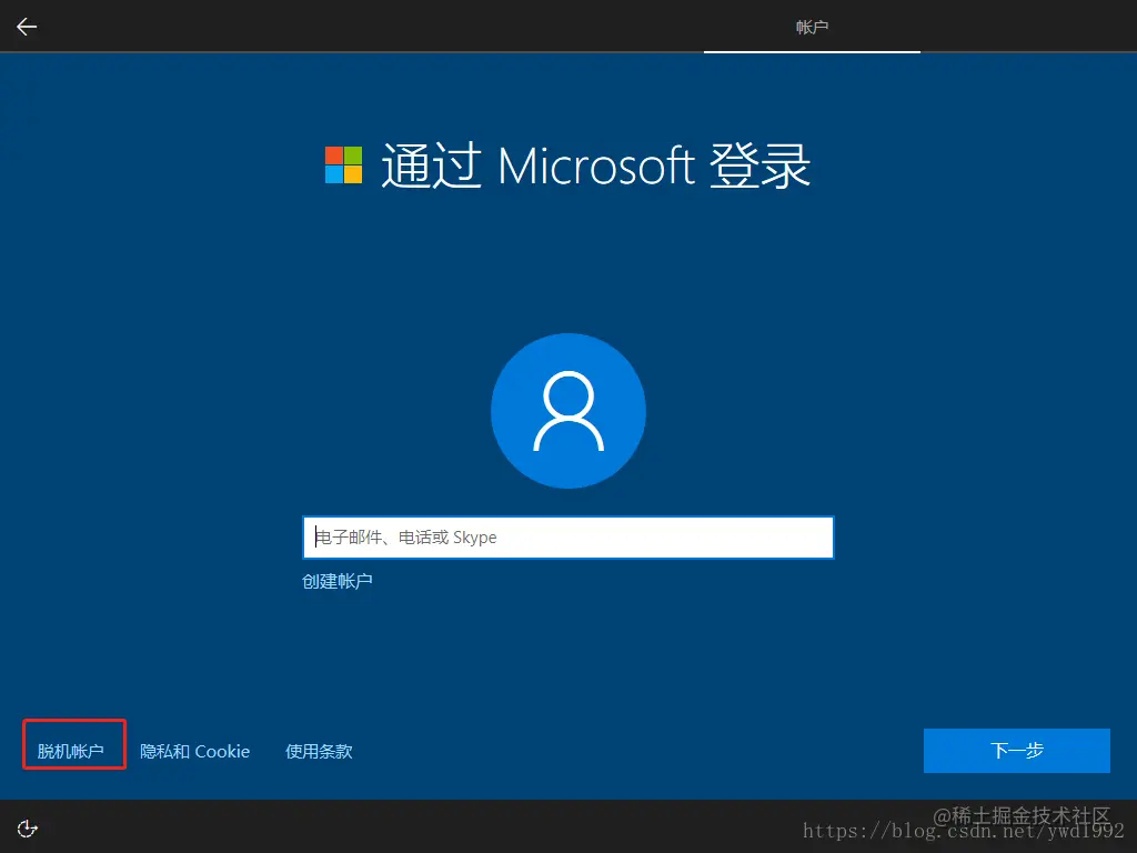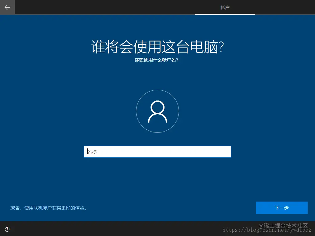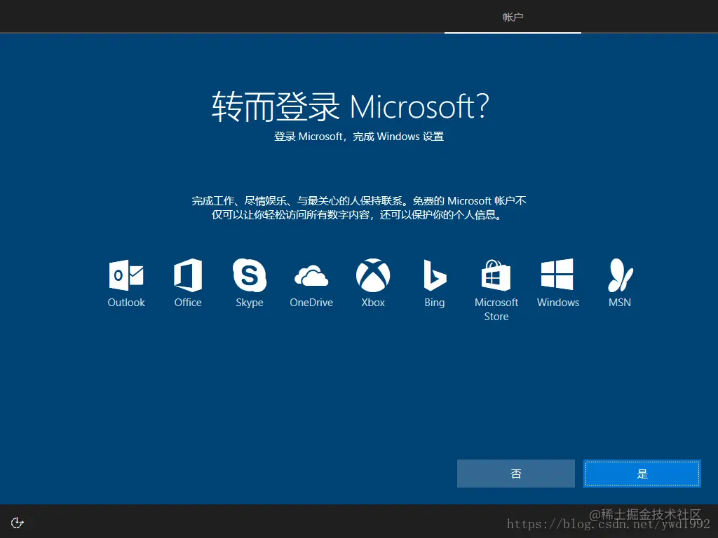 (17)、确认是否不登录微软账户,选择否,跳过登陆,创建脱机账户