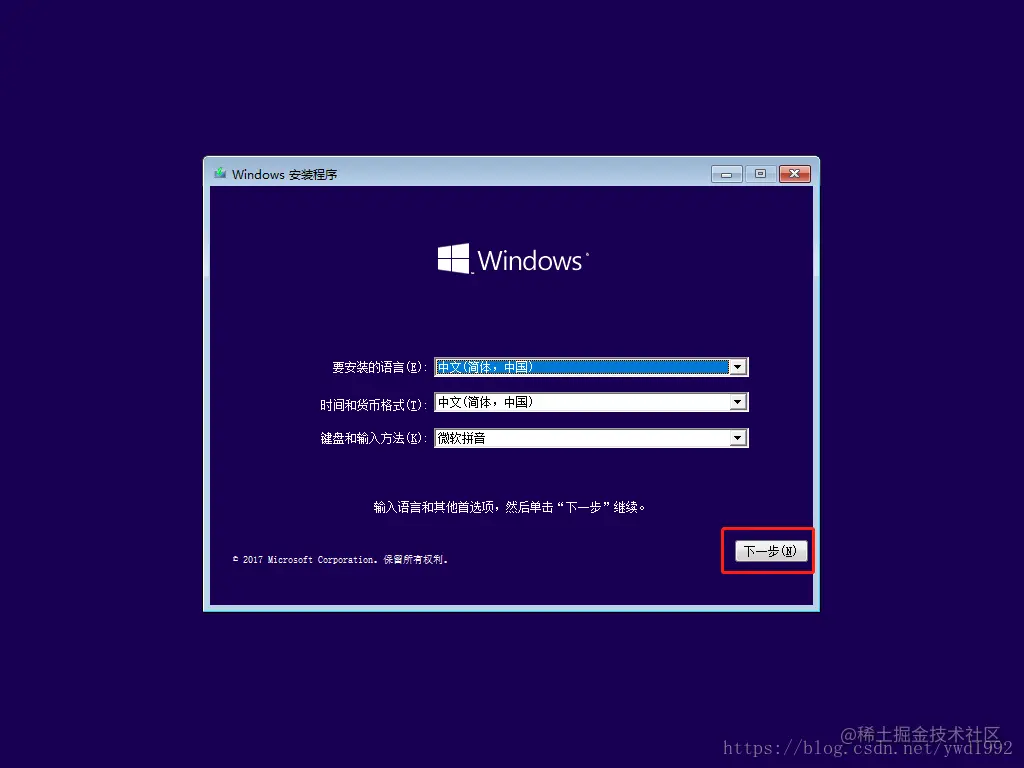 (3)、来到系统的安装界面,这里需要选择安装语言,时间和货币格式,键盘和输入方法等,因为我们是直接下载的简体中文的镜像,所以默认,点击下一步