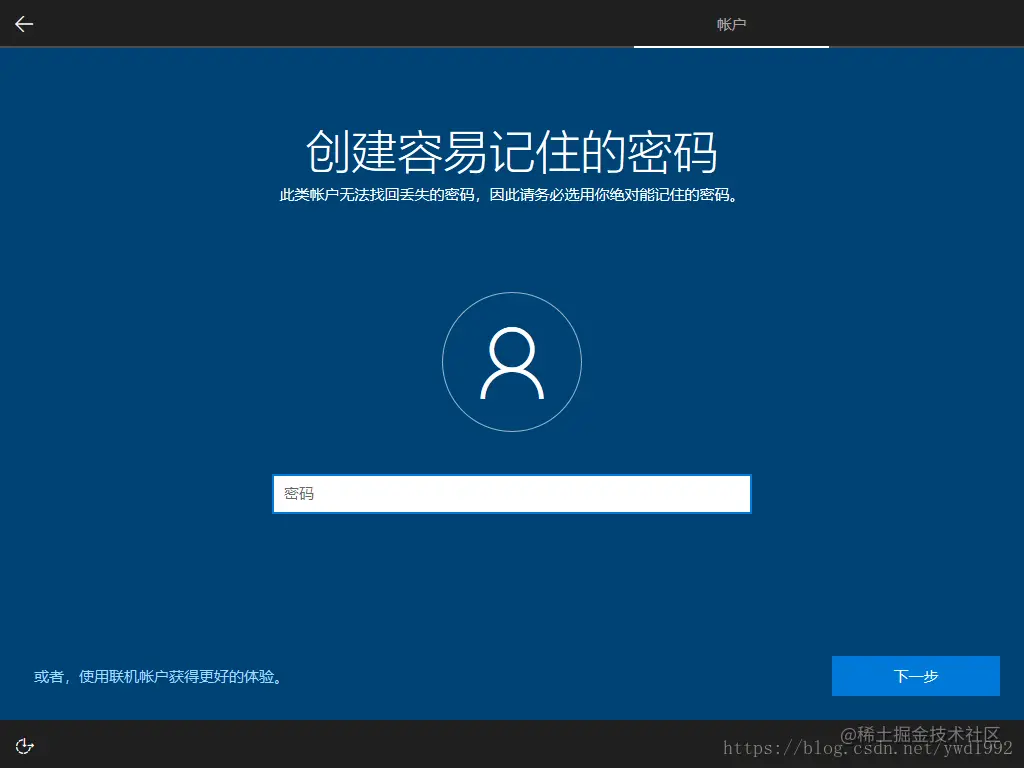 (19)、设置脱机账户的密码,如不想设置电脑密码,可直接空白不填写,点击下一步