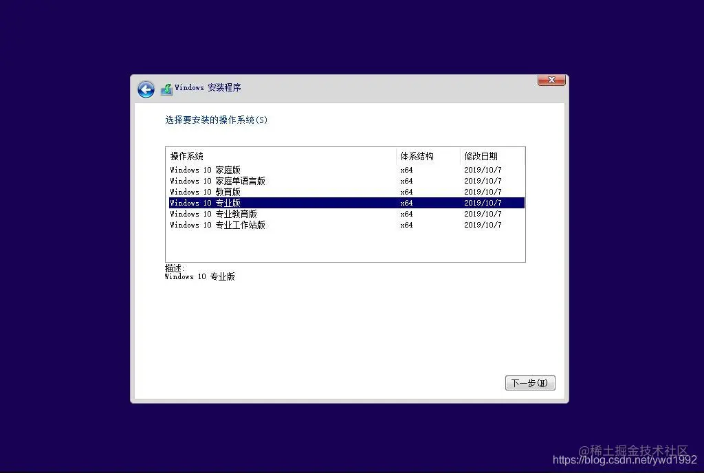 (5)、然后需要选择我们想安装的版本,教育版、企业版、专业版等等,这里建议直接选择专业版即可