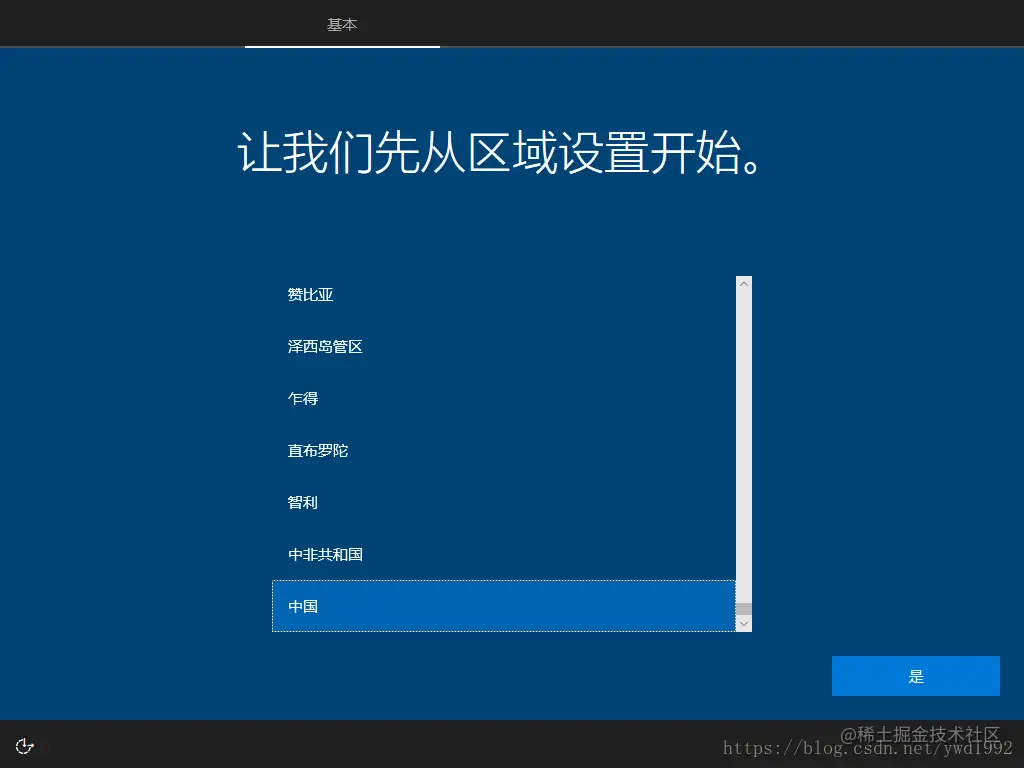 (11)、待系统进行完自动设置及准备工作后,就开始需要我们来做一些个性化的设置,首先选择区域,我们选择中国