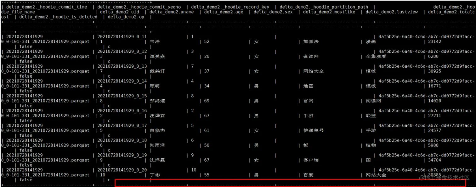 删除操作: delete from hudi.hudisource3 where uid=11;