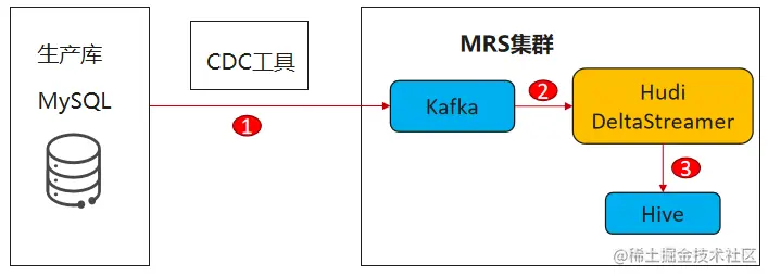 - 生产库数据通过CDC工具(debezium)实时录入到MRS集群中Kafka的指定topic里。