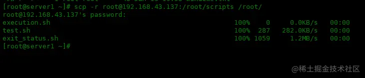 [root@server1 ~]# scp -r root@192.168.43.137:/root/scripts /root/