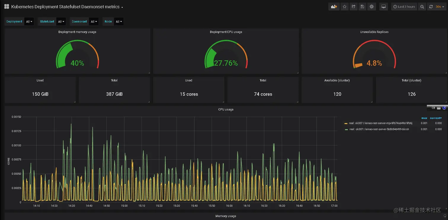 而这些则是 kube-state-metrics 提供的内容,它基于client-go开发,轮询Kubernetes API,并将Kubernetes的结构化信息转换为metrics。kube-state-metrics是kubernetes开源的一个插件。