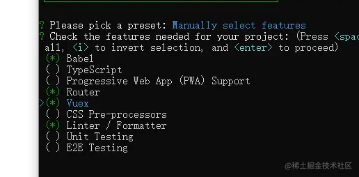 通过脚手架创建项目可以勾选Vuex选项,会根据项目使用的是 vue2 还是 vue3 自动安装对应版本的 Vuex。