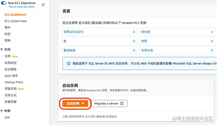 点击网页中的“启动实例”按钮。