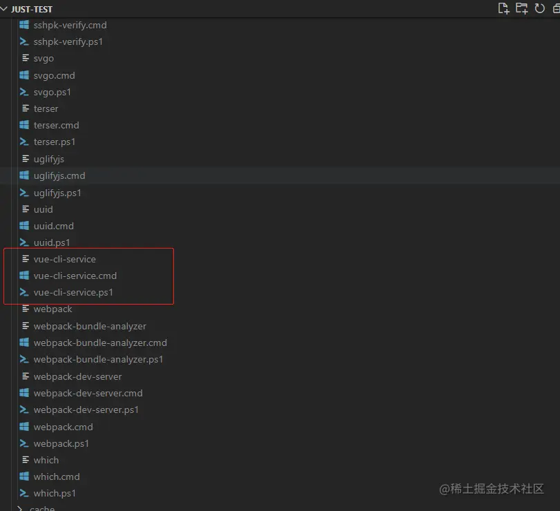 面试官:我有点好奇。刚刚看到在node_modules/bin中 有三个vue-cli-service文件。为什么会有三个文件呢?