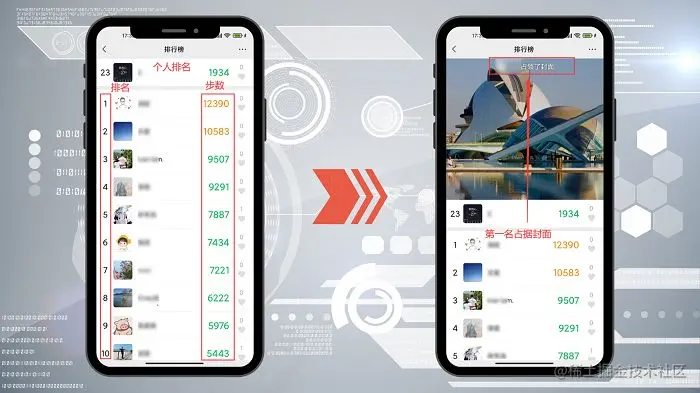 第3步:可以看到你与好友之间的步数都统计在这里了,还为步数之间的多与少之间给出了排名,个人的步数与排名显示在第一名的上方处,步数冠军则占据封面!