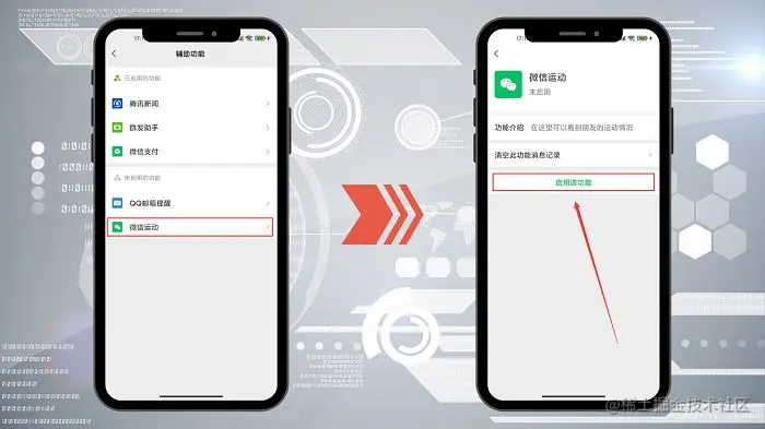 第3步:在这里能看到各个小功能,有每日给我们推送最新热点新闻的腾讯新闻,每天消费交易的微信支付等等,当然“微信运动”也在里面,点进去后选择“启用该功能”,微信运动就启动成功啦!