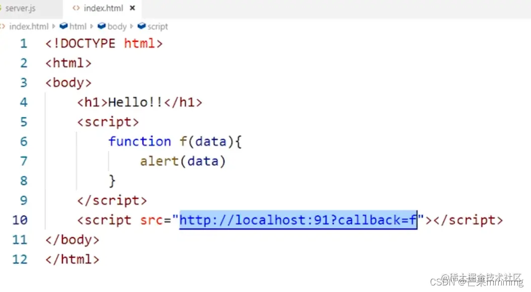 后端代码:可以看到这个funcname对应的就是那个f,然后拼接一下就变成了f('你好'),那么这个东西就返回给了前端。但是但是前端这个时候注册了一个f函数呀,所以就会执行这个f('你好'),那么前端的数据也就请求回来了。